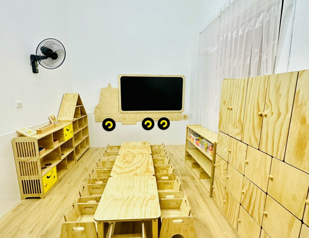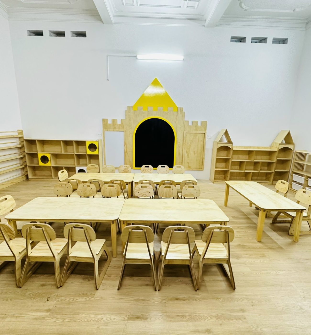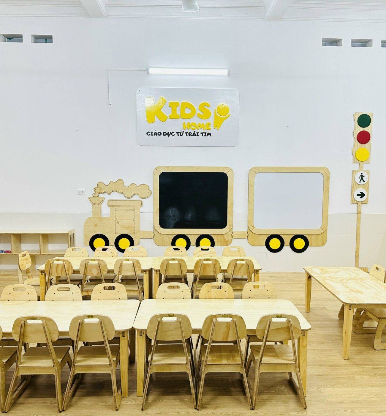 Không gian lớp học là nơi mà các bé và giáo viên dành phần lớn thời gian ở đó. Lựa chọn đồ nội thất, giáo cụ... tạo nên vẻ ngoài dễ chịu, bền bỉ để các Bé thích thú với việc tới trường.