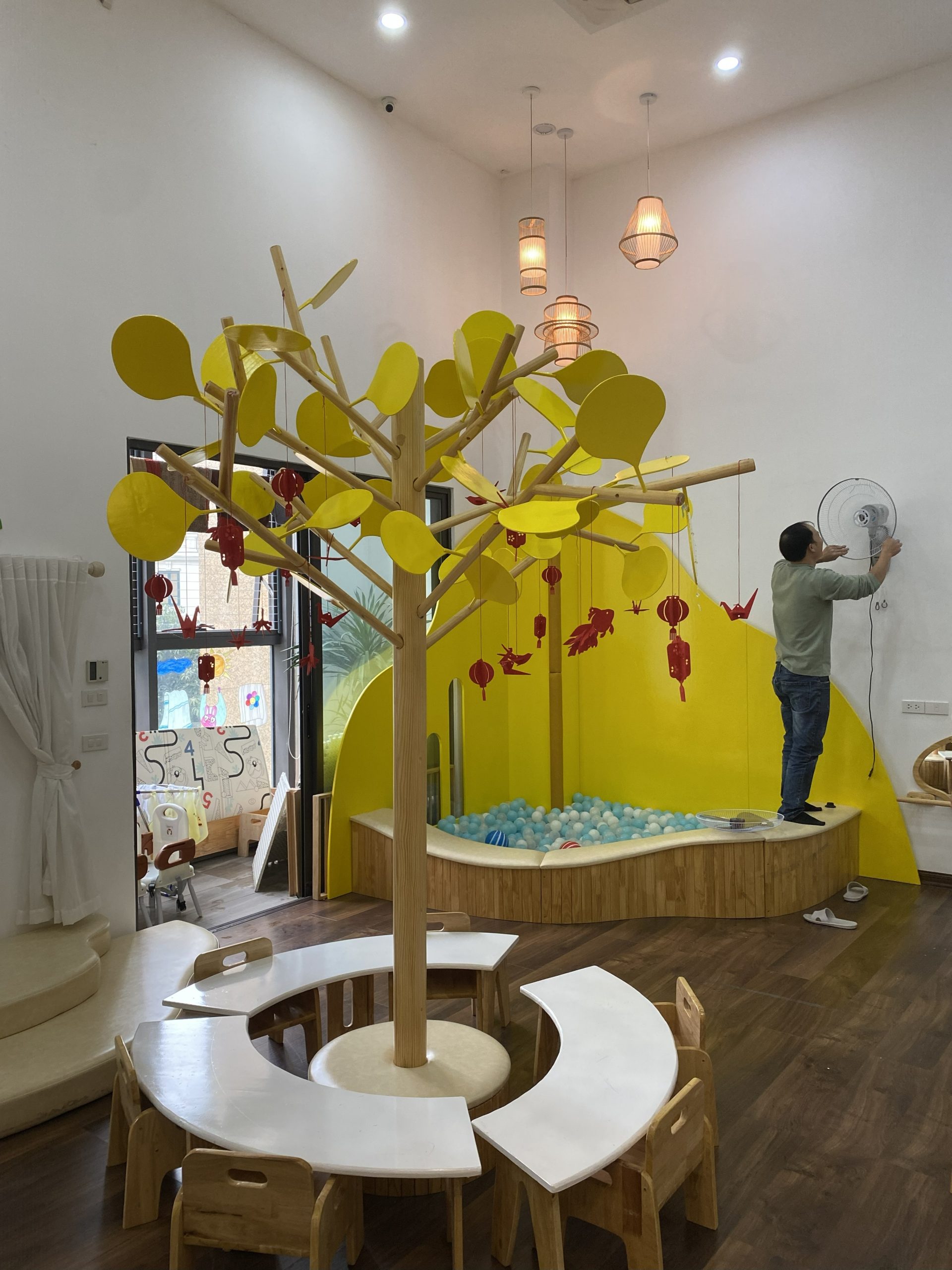 Tỷ lệ trẻ trên 1,5m/ 1 trẻ để tránh quá tải, ồn ào